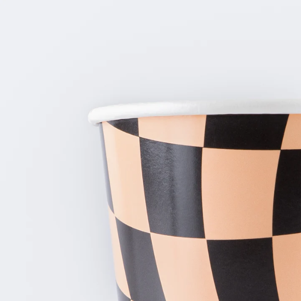Incredibili bicchieri a quadretti perfetti per il tuo Halloween Party! La confezione contiene 8 bicchieri in cartoncino eco friendly capacità 256 ml.