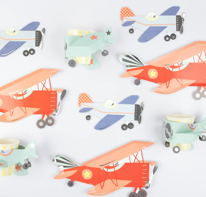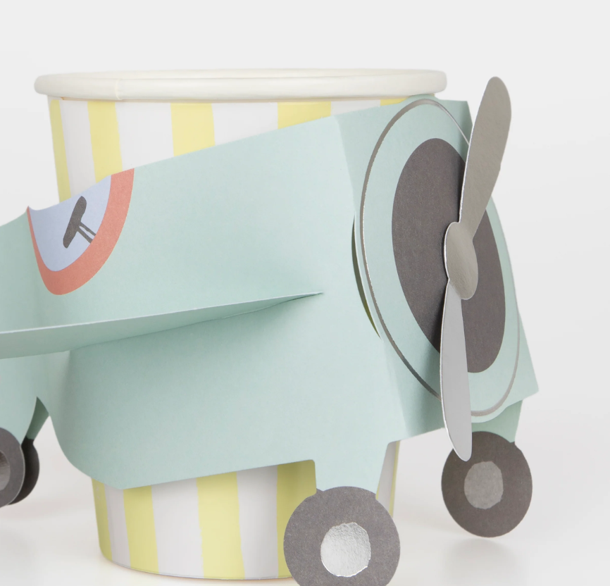 8 incredibili bicchieri in cartoncino eco friendly a forma di aeroplano, lasceranno i tuoi ospiti senza parole! Capacità 256 ml.