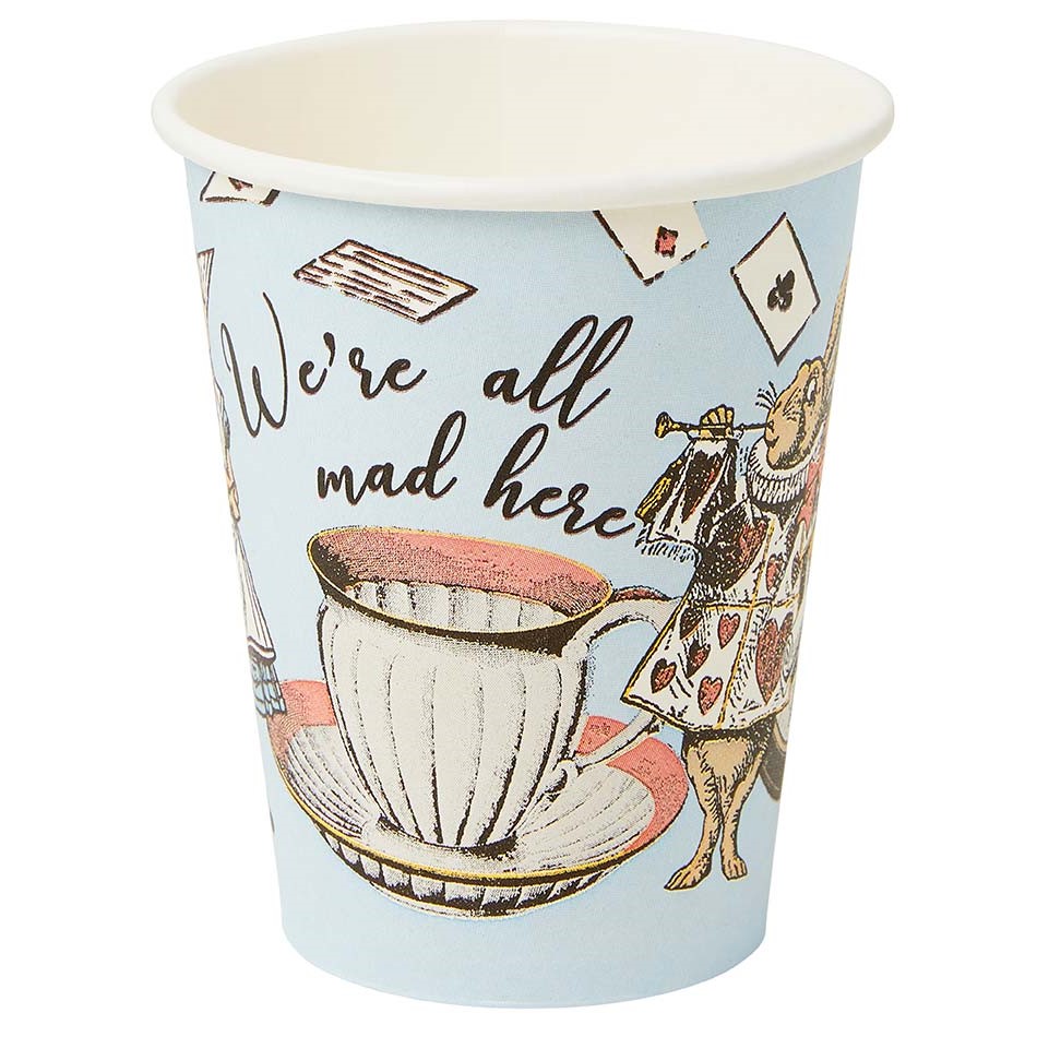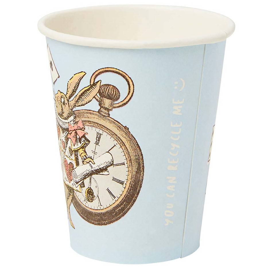 Incredibili bicchieri a tema Alice in Wonderland, perfetti per trasformare il tuo party nel paese delle meraviglie! La confezione contiene 8 bicchieri eco-friendly in cartoncino dimensione 250 ml.