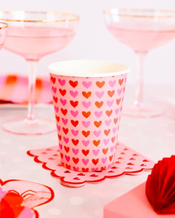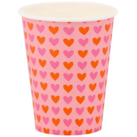 8 splendidi bicchieri in cartoncino con cuori rosa e rossi, perfetti per festeggiare San Valentino! Altezza 11,4 cm.