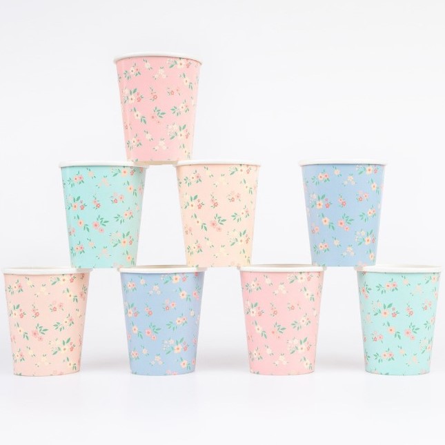 8 adorabili bicchieri in cartoncino in 4 splendide tonalità pastello e fiorellini, perfetti per un evento elegante e raffinato! Capacità 256 ml.