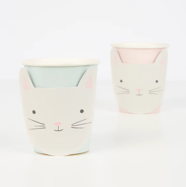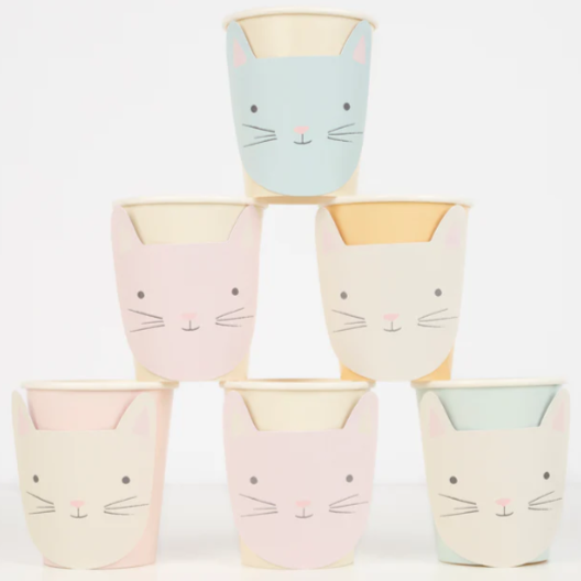 8 Meravigliosi bicchieri sagomati con gattini nei toni pastello, perfetti per un party a tema gatti o per il compleanno del tuo cucciolo! Sono adatti sia per bevande calde che fredde e sono realizzati con cartoncino eco friendly.