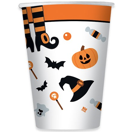 8 simpatici bicchieri in cartoncino con fantasmi, zucche e pipistrelli, perfetti per il tuo Halloween Party! Capienza 200 cc.