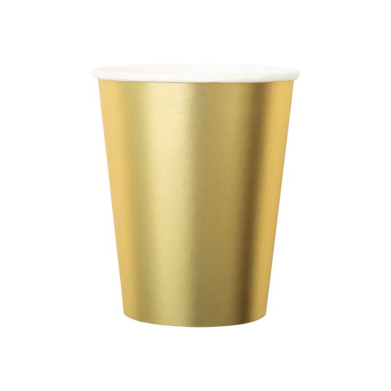 Bicchieri Oro Satinato in Carta, perfetti per il tuo Party elegante e raffinato! La capienza è 250 cc e la confezione contiene 8 Bicchieri.