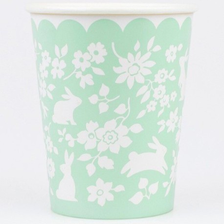 8 splendidi bicchieri in cartoncino con adorabili illustrazioni di fiori e coniglietti in 4 tonalità pastello, perfetti per rendere ancora più speciale la tua tavola di Pasqua! Sono adatti sia per bevande calde che fredde, il che li rende versatili ed eleganti. Capacità 256 ml.