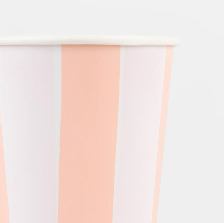 8 splendidi bicchieri a strisce in 4 diverse tonalità pastello, perfetti per il tuo party primaverile super colorato ed originale! Sono realizzati in cartoncino e sono adatti per bevande calde e fredde. Capacità 256 ml.