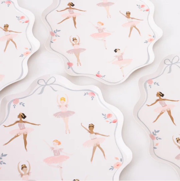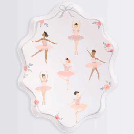 Incredibili piatti con bordo ondulato e splendide illustrazioni con ballerine danzanti. La confezione contiene 8 piatti in carta ecologica di alta qualità.