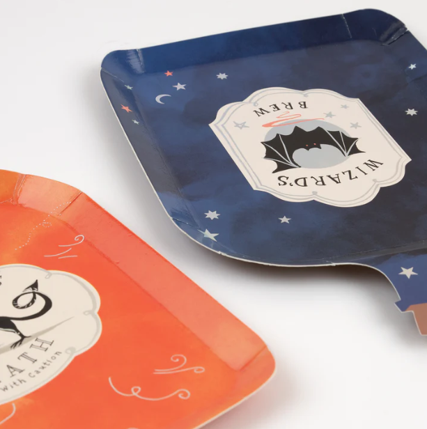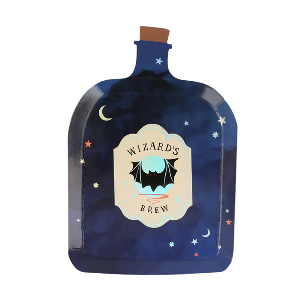 Incredibili piatti sagomati a forma di bottiglia di pozione magica, perfetta per il tuo Halloween Party! La confezione contiene 8 piatti in cartoncino eco friendly dimensione 15,9 x 23,5 cm.