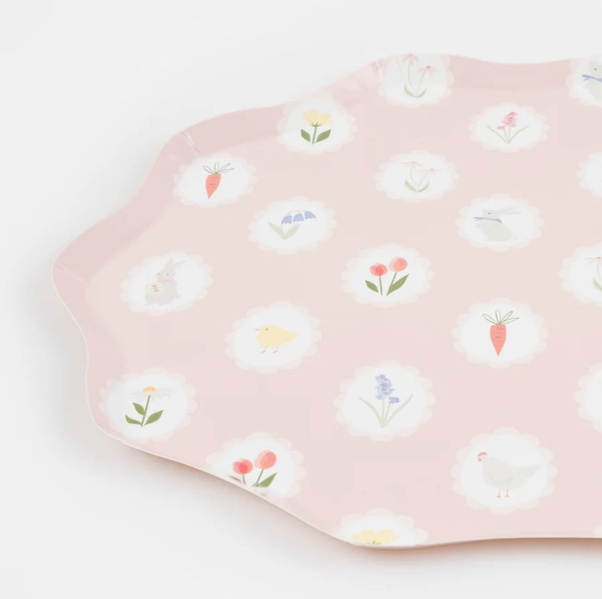 8 splendidi piatti in cartoncino rosa pastello con illustrazioni a tema Pasqua e Primavera, perfetti per aggiungere un tocco di eleganza alla tua tavola! Dimensione 26,7 x 26,7 cm.