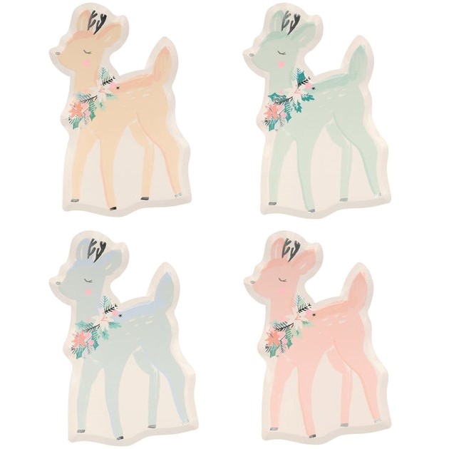 Perché scegliere piatti semplici, quando puoi avere questi meravigliosi cervi al tuo Party? Sono realizzati in carta ecologica splendidi colori pastello e dettagli in argento per un effetto elegante e raffinato.