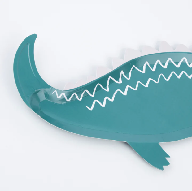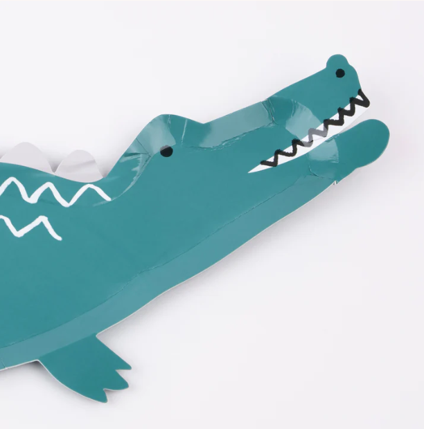 Incredibili piatti sagomati a forma di coccodrillo, perfetti per il tuo Party a tema Giungla! La confezione contiene 8 piatti in cartoncino eco friendly dimensione 36,8 x 17,8 cm.