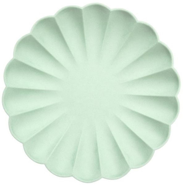 Meravigliosi Piatti dai Colori Misti (Verde Menta, Rosa Pastello, Rosa Intenso e Azzurro Pastello), realizzati con materiali naturali, ossia bambù, fibra di legno e canna da zucchero, tinti con inchiostri a base d’acqua. Hanno un bellissimo design modellato con un elegante bordo smerlato. 100% naturale eco friendly. La confezione contiene 8 piatti.