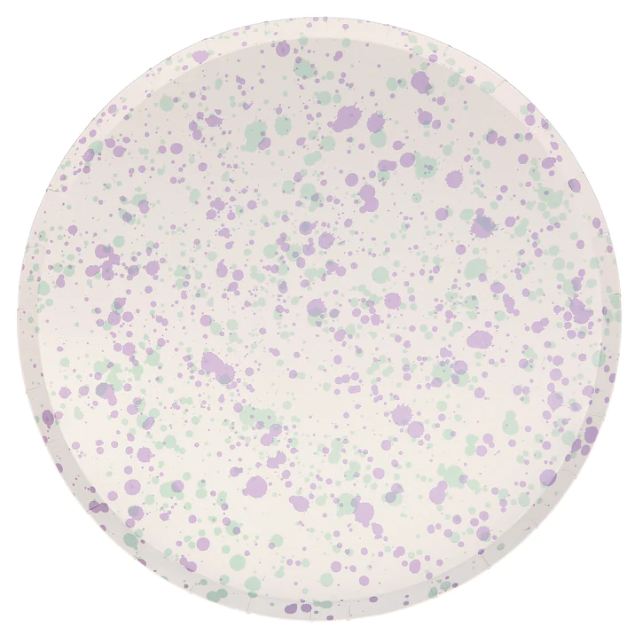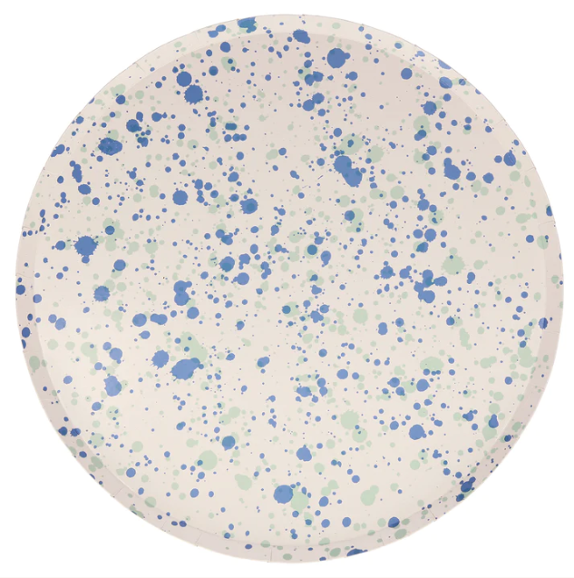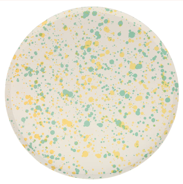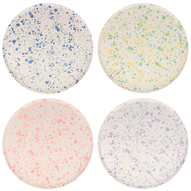 8 incredibili piatti con macchie colorate, perfetti per il tuo party super originale! Realizzati con carta ecologica.
