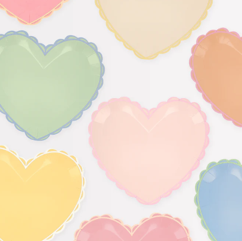 8 Meravigliosi piatti in cartoncino eco friendly in 8 splendide tonalità pastello, perfetti per San Valentino! Dimensione 25,4 x 22,9 cm.