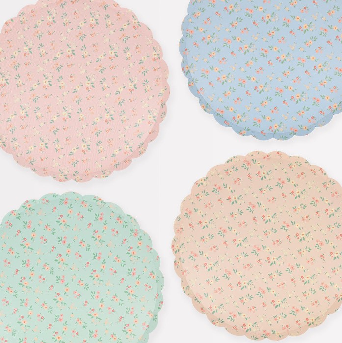 8 adorabili piatti in cartoncino in 4 splendide tonalità pastello e fiorellini, perfetti per un evento elegante e raffinato! Dimensione: 26,7 x 26,7 cm.