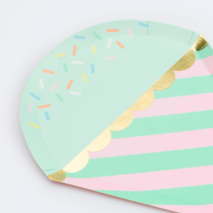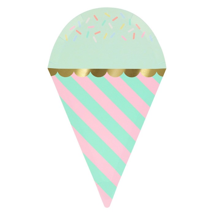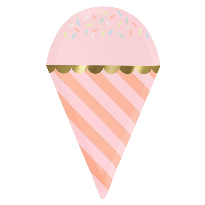 8 incredibili piatti sagomati in cartoncino a forma di gelati colorati, perfetti per il tuo party estivo super originale e divertente! Dimensione 15,9 x 26,4 cm.