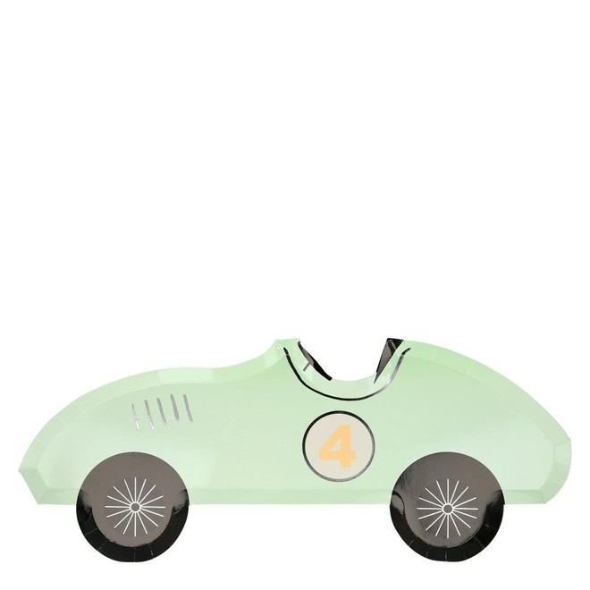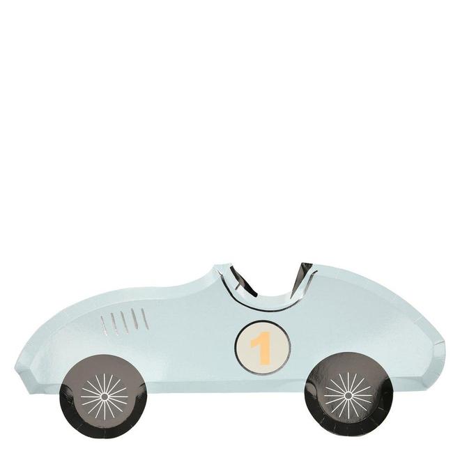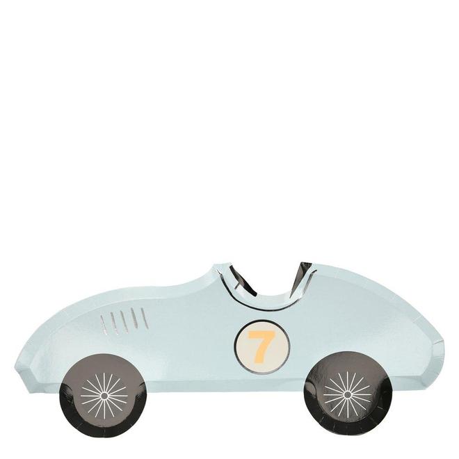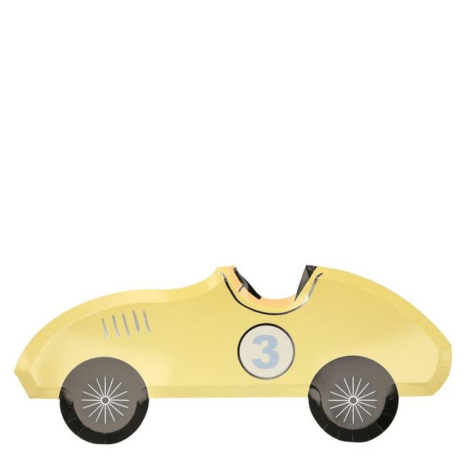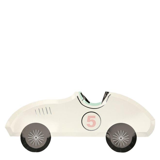 Favolosi piatti sagomati a forma di macchina da corsa! I tuoi ospiti li adoreranno! La confezione contiene 8 piatti in carta ecologica in 5 colori: rosso, bianco, giallo, blu e menta, con eleganti dettagli in lamina d’argento.