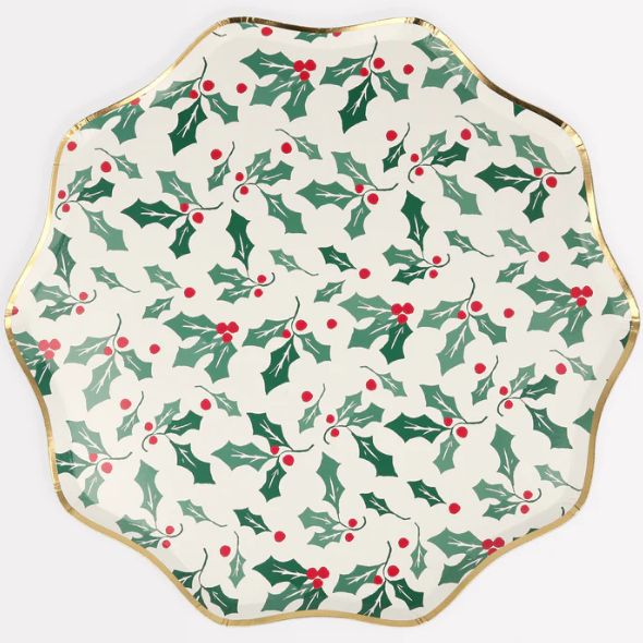 Meravigliosi piatti natalizi con bordo ondulato oro, perfetti per la tua tavola di Natale! La confezione contiene 8 piatti in cartoncino eco friendly dimensione 26,7 x 26,7 cm.