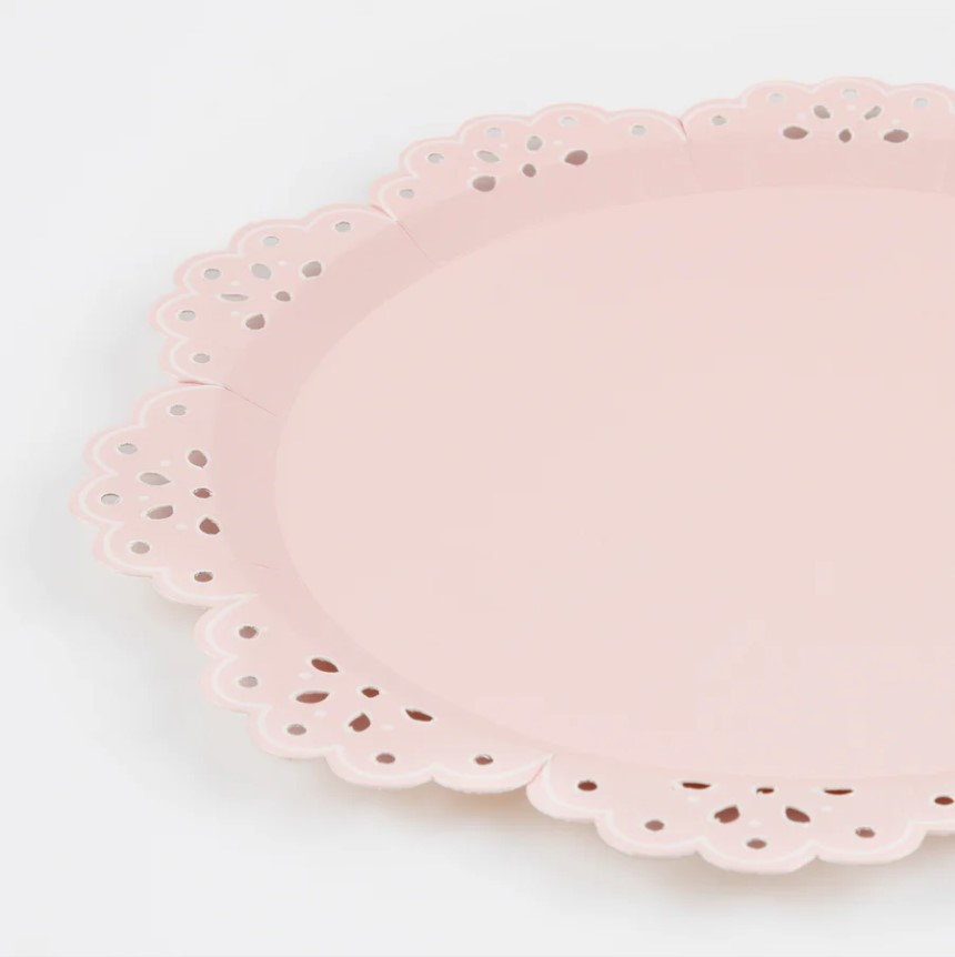 8 meravigliosi piatti in cartoncino che si ispirano al design in pizzo Broderie Anglaise con dettagli unici in rilievo ed in 2 splendide tonalità pastello, perfetti per il tuo evento raffinato ed elegante! Dimensione 26,4 x 26,4 cm.