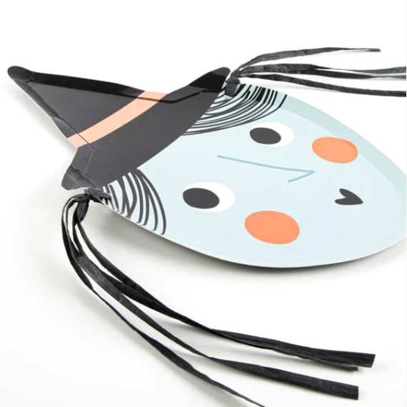 Aggiungi un delizioso tocco decorativo al tuo tavolo di Halloween con questi fantastici piatti sagomati a forma di strega! La confezione contiene 8 piatti in cartoncino ecologico con dettagli in lamina di rame lucido.