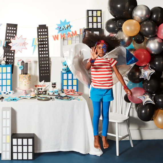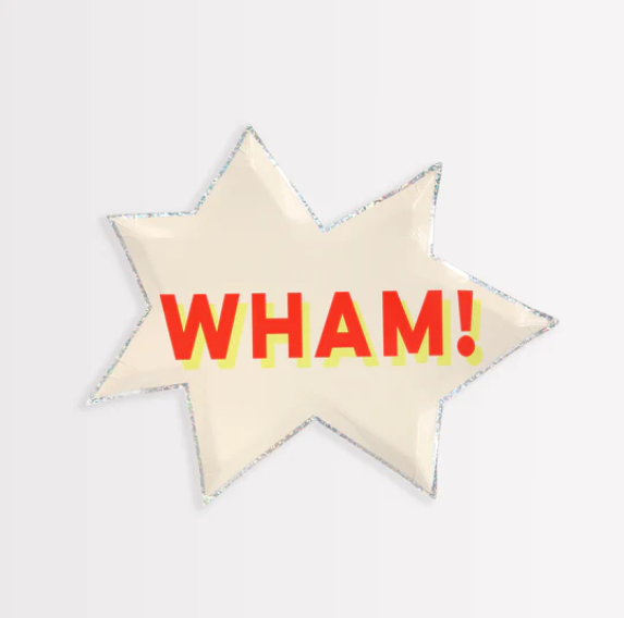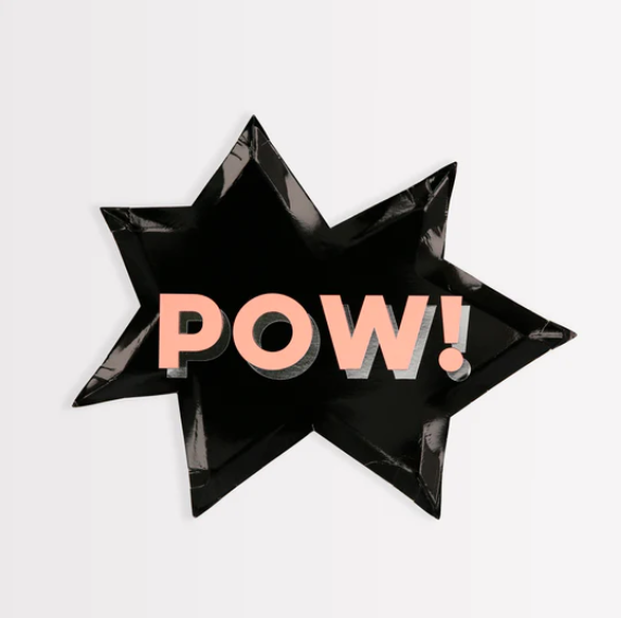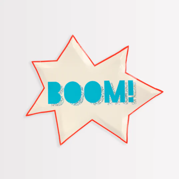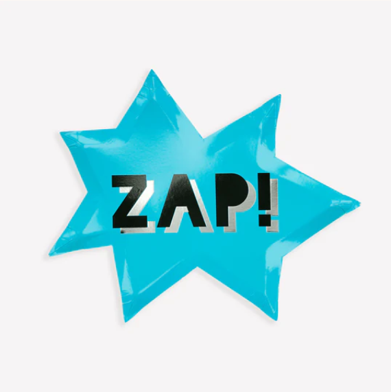 8 incredibili piatti sagomati con scritte dei fumetti, perfetti per il tuo party a tema Supereroi! Sono realizzati con carta ecologica di alta qualità e sono in 4 disegni con dettagli argento olografico. Dimensioni del prodotto: 25,4 x 20,3 x 1,3 cm.