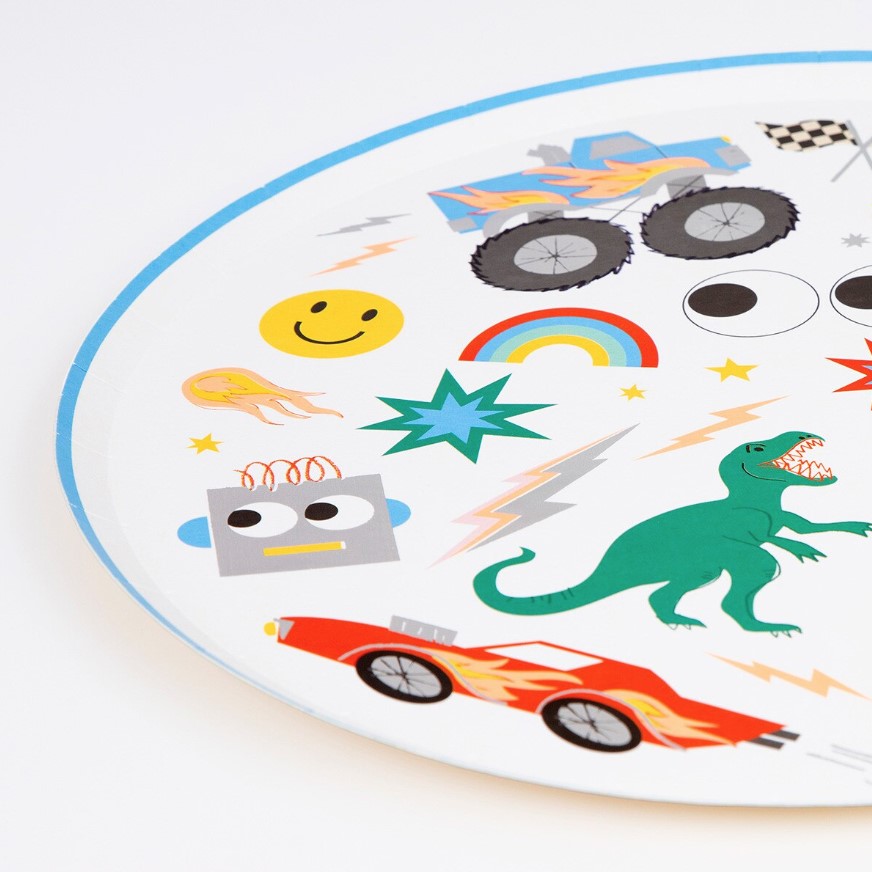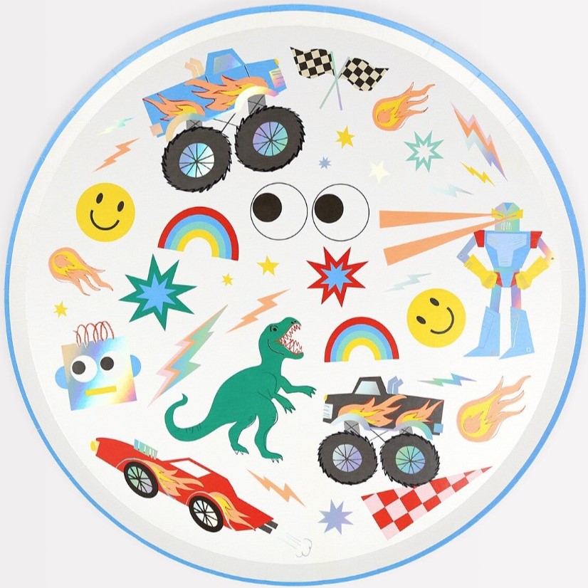 8 incredibili piatti in cartoncino a tema “scatola da giochi”, li ameranno sia i bimbi che gli adulti! Dimensioni: 26,7 x 26,7 cm.