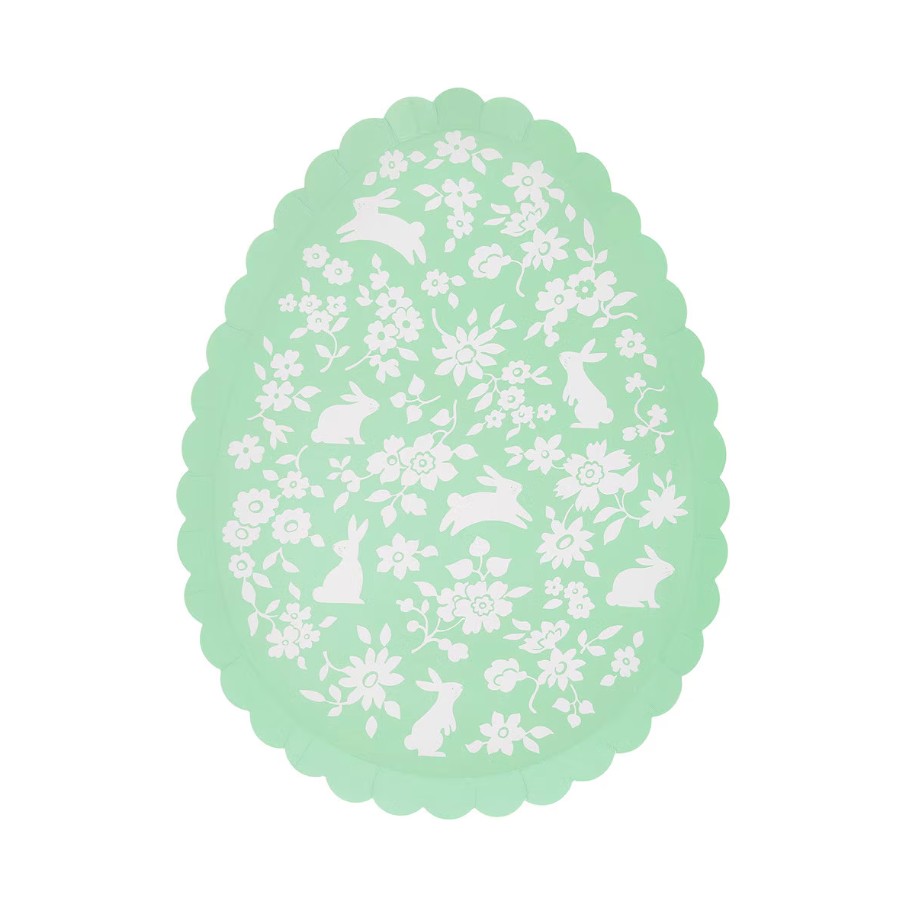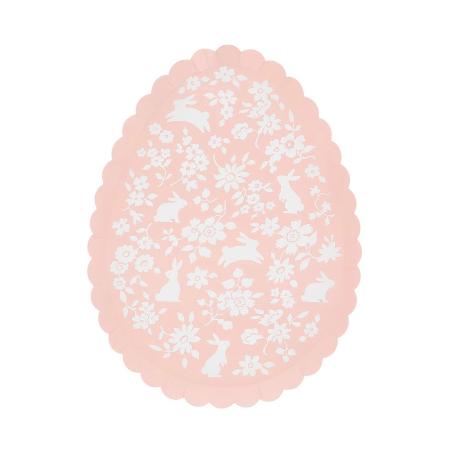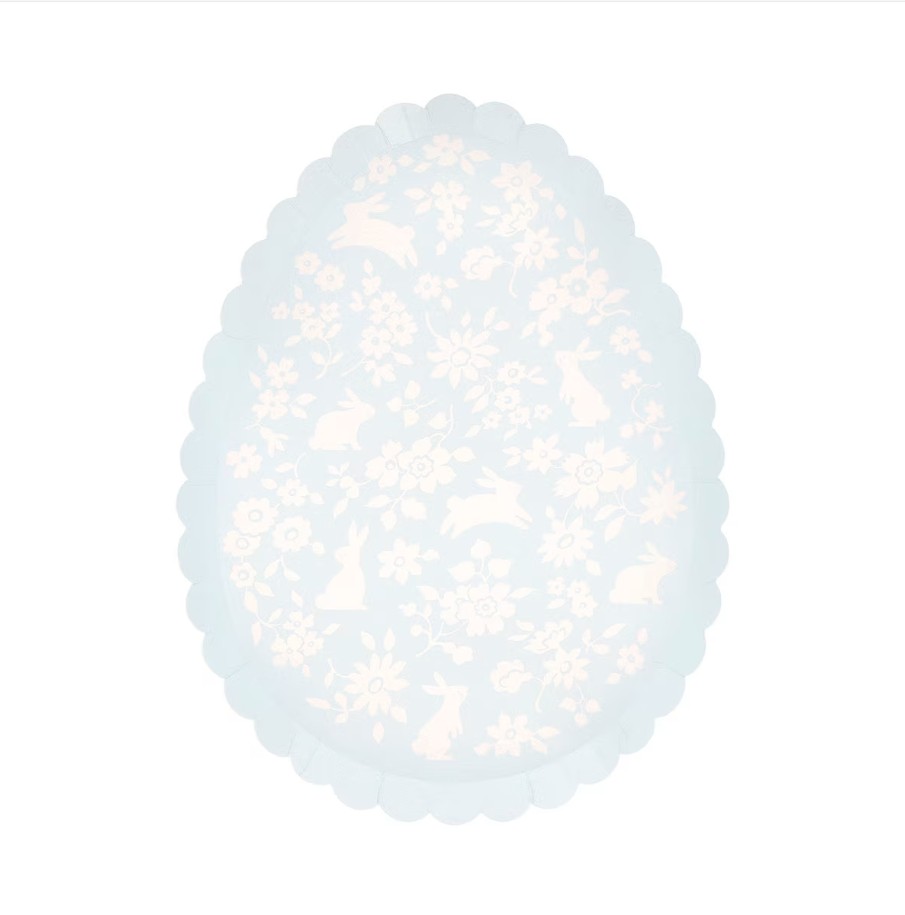 8 splendidi piatti in cartoncino a forma di uova, impreziosite da adorabili illustrazioni con fiori e coniglietti in 4 tonalità pastello ed un elegante bordo smerlato. Sono perfetti per rendere ancora più speciale la tua tavola di Pasqua! Dimensione 17,1 x 22,2.