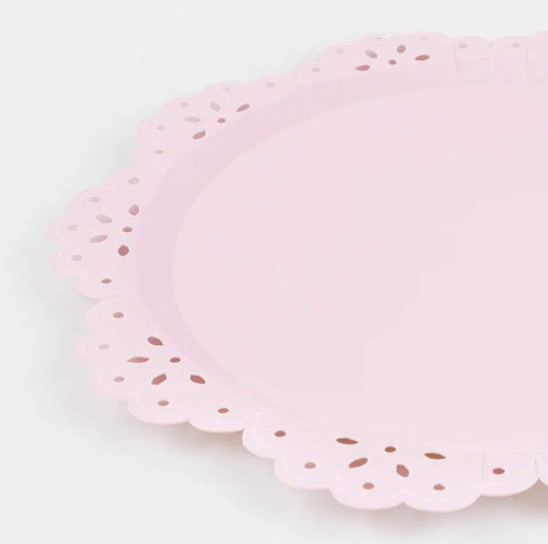 8 meravigliosi piatti in cartoncino che si ispirano al design in pizzo Broderie Anglaise con dettagli unici in rilievo ed in 2 splendide tonalità pastello, perfetti per il tuo evento raffinato ed elegante! Puoi utilizzarli sia come piatti, che come vassoi o sottopiatti. Dimensione 33,7 x 33,7 cm.