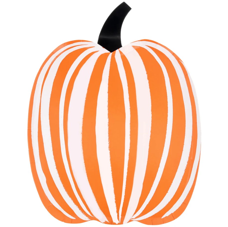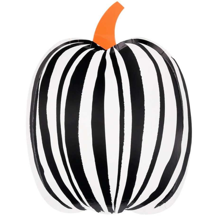 8 incredibili piatti in cartoncino a forma di zucca con eleganti strisce, perfetti per una festa di Halloween vivace ed originale! Ideali per una festa per bambini o per una serata spaventosamente chic!