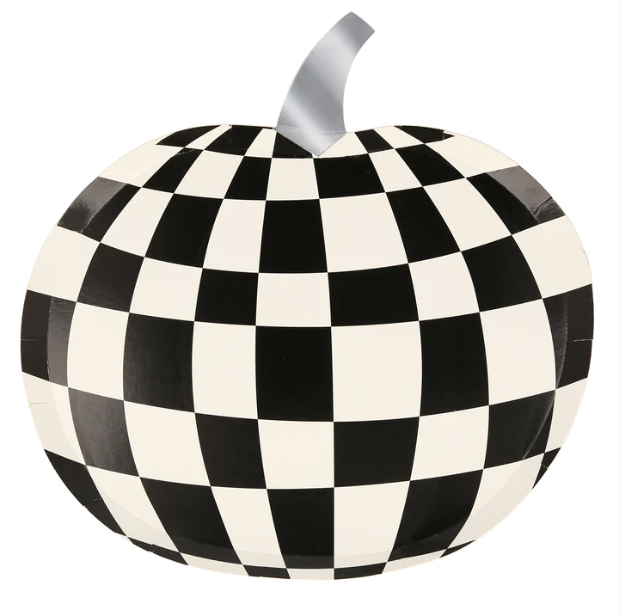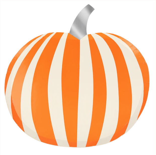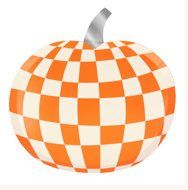 Incredibili piatti sagomati a forma di zucchette a quadretti e strisce, perfetti per il tuo Halloween Party! La confezione contiene 8 piatti in cartoncino eco friendly dimensione 21,6 x 22,2 cm.