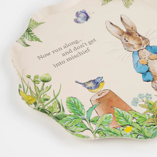 Porta la magia di Peter Rabbit nel tuo Party con questi splendidi piattini in carta in carta ecologica di alta qualità con bordo smerlato!