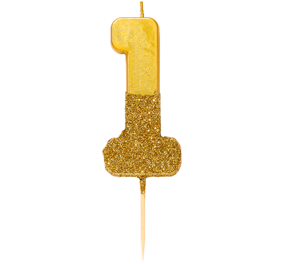 Festeggia il tuo grande giorno speciale con questa meravigliosa candelina Oro con glitter!
