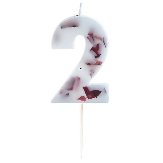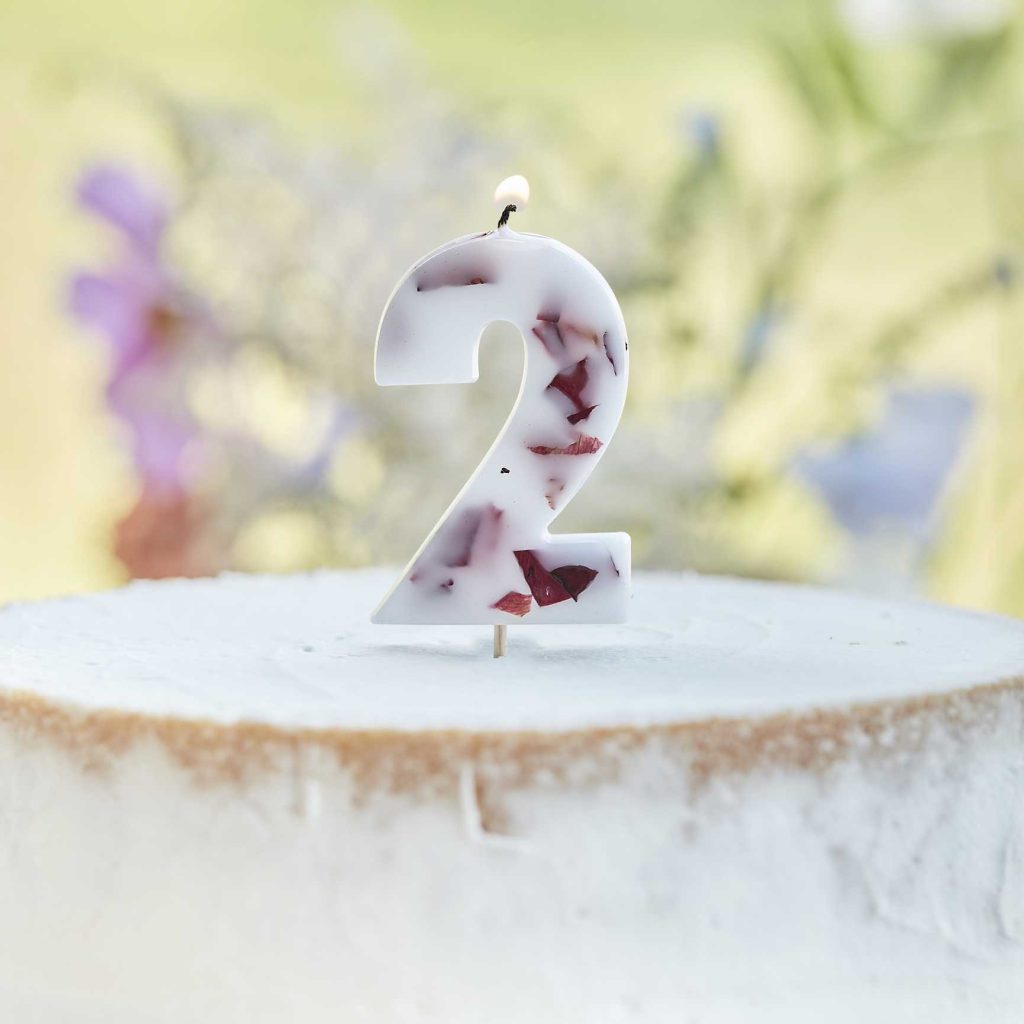 Splendida candela di compleanno con petali pressati, perfetta per il tuo Party a tema floreale! Dimensione 9 cm (altezza) x 4 cm (larghezza).