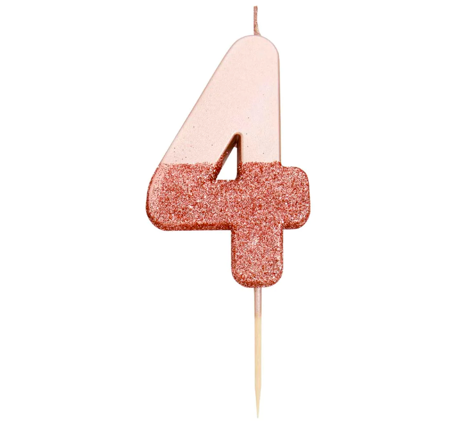 Festeggia il tuo grande giorno speciale con questa meravigliosa candelina Rose Gold con glitter!