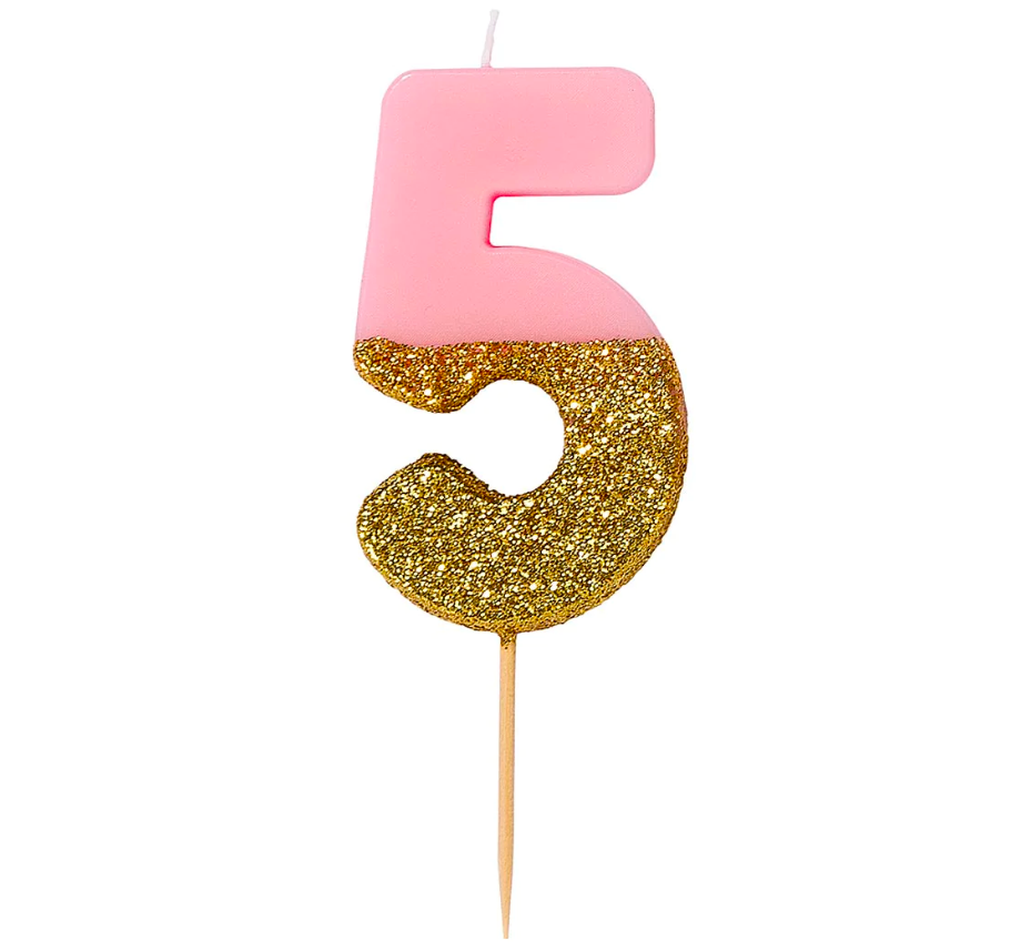 Festeggia il tuo grande giorno speciale con questa meravigliosa candelina Rosa con glitter Oro!