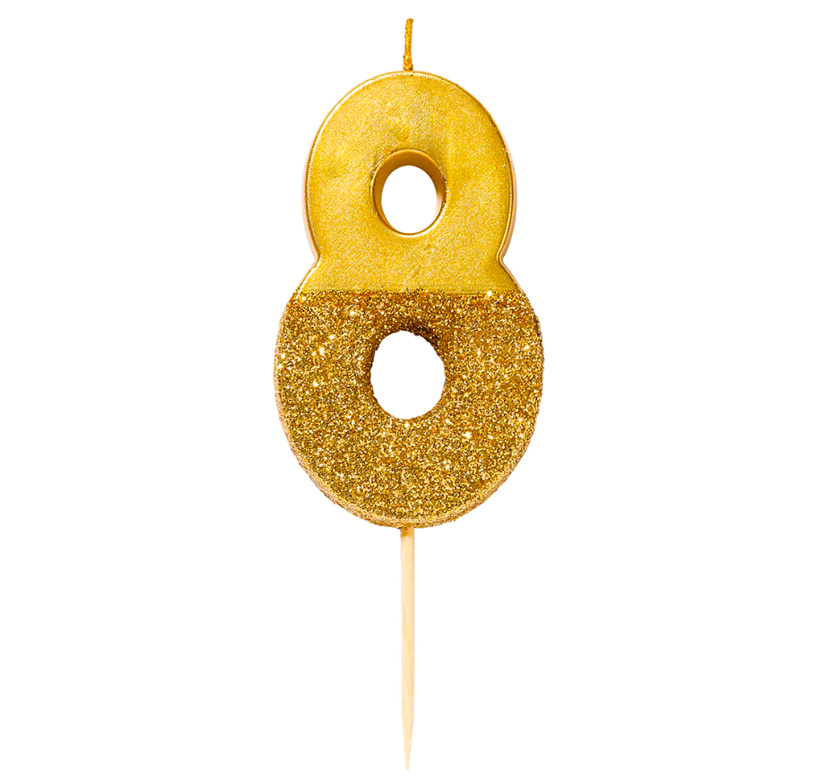 Festeggia il tuo grande giorno speciale con questa meravigliosa candelina Oro con glitter!
