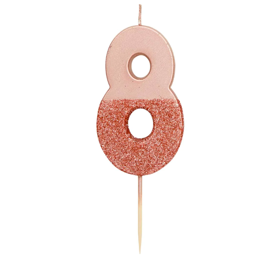 Festeggia il tuo grande giorno speciale con questa meravigliosa candelina Rose Gold con glitter!