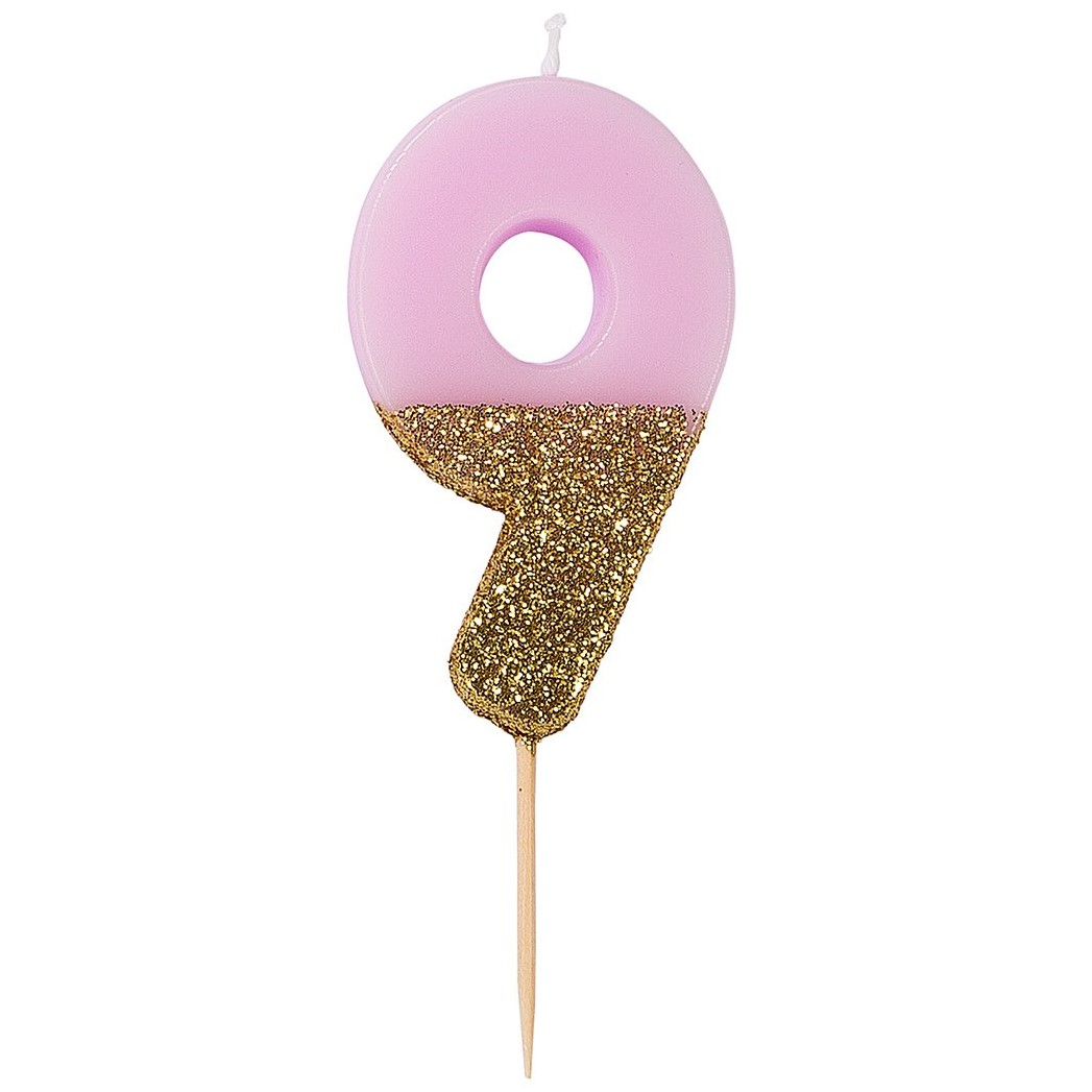 Festeggia il tuo grande giorno speciale con questa meravigliosa candelina Lilla con glitter Oro!