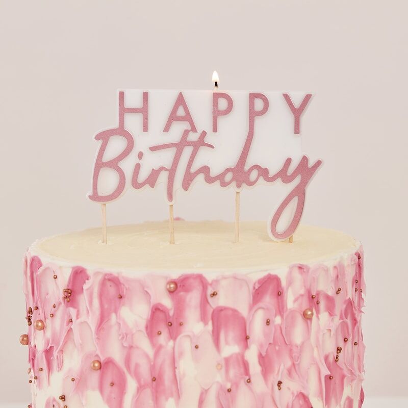 Splendida candelina rose gold con scritta Happy Birthday, perfetta per rendere ancora più favolosa la tua torta di compleanno!