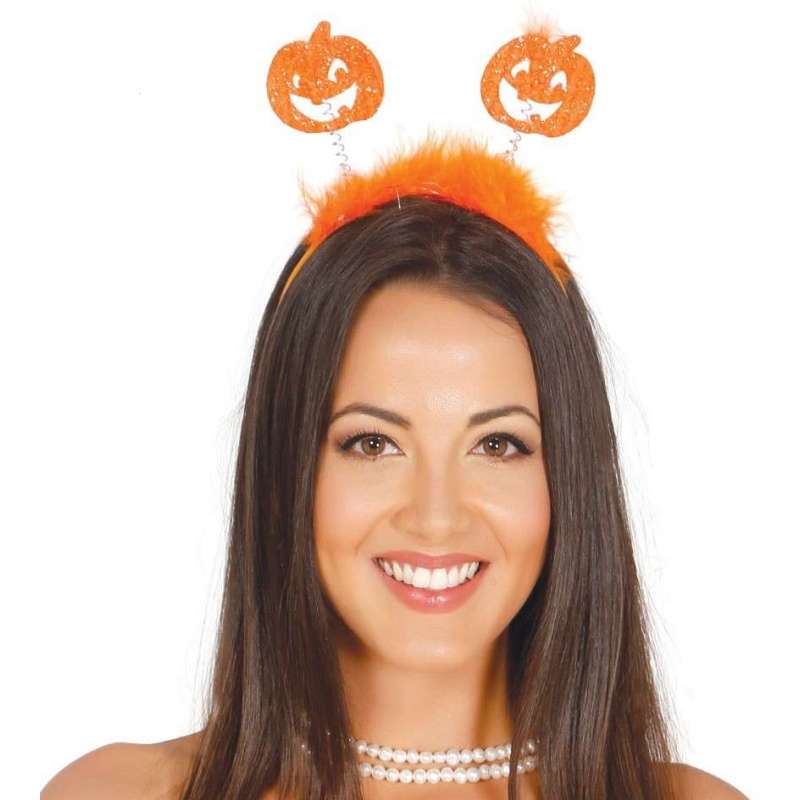 Fantastico cerchietto con zucche arancioni glitter, perfetto per il tuo Halloween Party!
