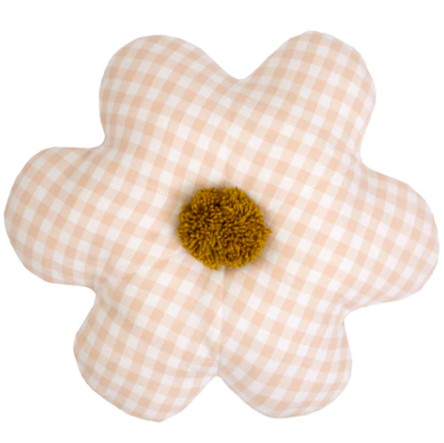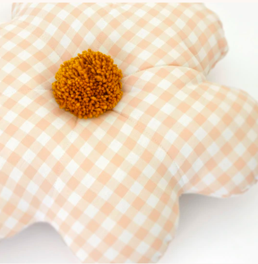 Delizioso cuscino a forma di margherita, perfetto per il tuo Party in giardino! E’ realizzato in cotone con splendidi dettagli trapuntati ed un dolcissimo pom pom giallo al centro.