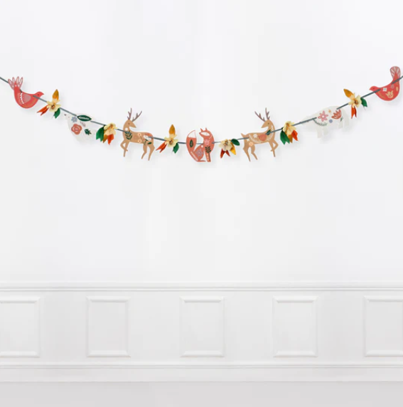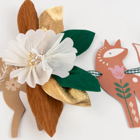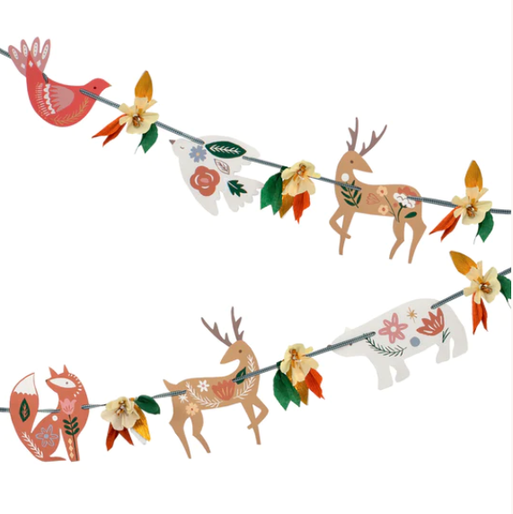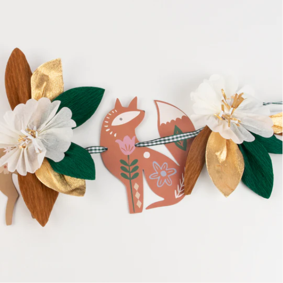Meraviglioso festone con bellissimi animali del bosco, perfetto per il tuo party autunnale! E’ realizzato con animali, fiori e foglie di carta, legati con uno splendido nastro a quadretti verdi e bianchi.