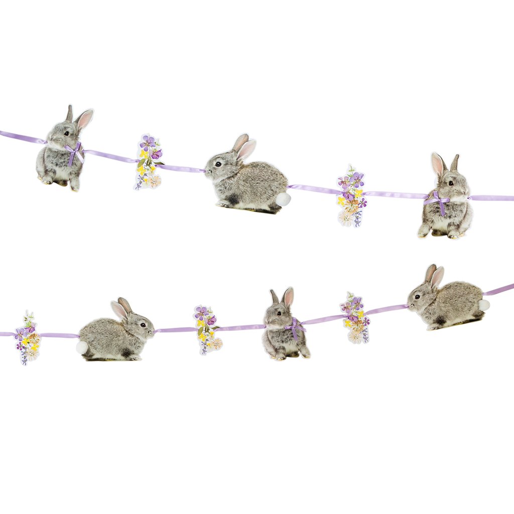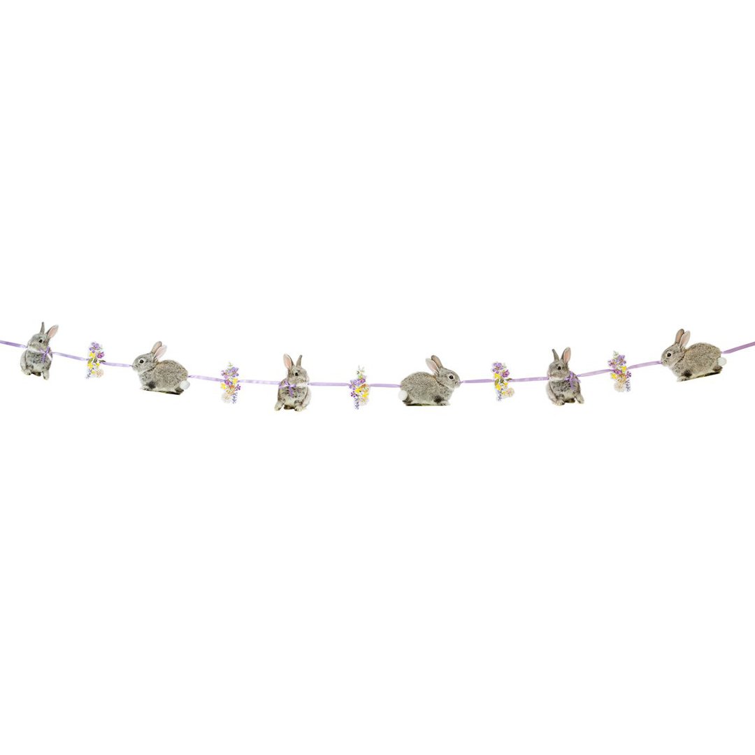 Splendido festone con coniglietti e fiori, perfetto come decorazione per il tuo Easter Party! Lunghezza 3 metri.