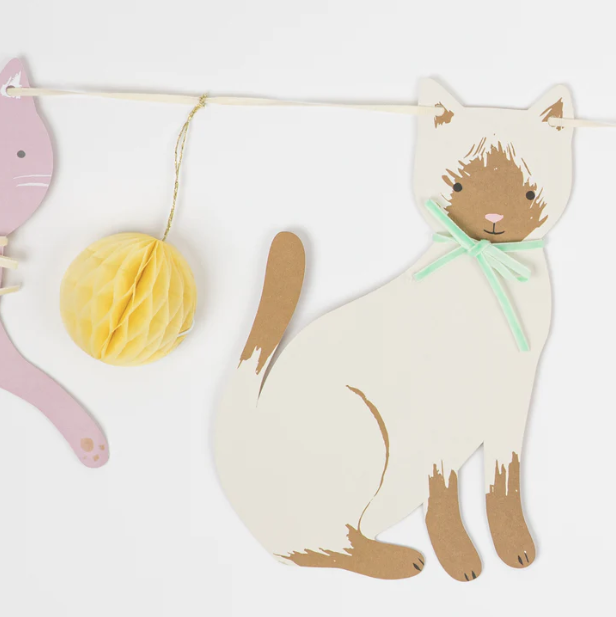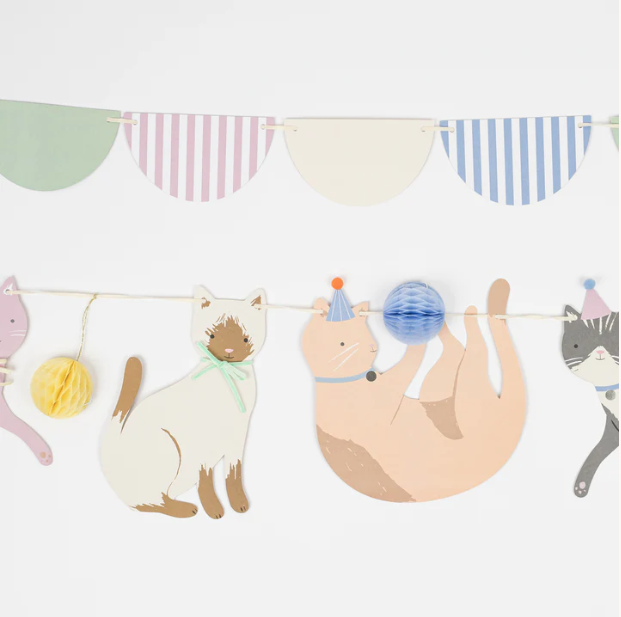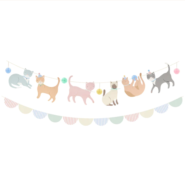 Meraviglioso festone a tema gattini nei toni pastello, perfetto per un party a tema gatti o per il compleanno del tuo cucciolo!