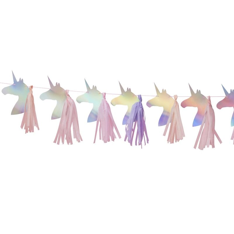 Lascia che la magia riempia la tua festa con questo fantastico festone a tema Unicorni! La confezione contiene una corda rosa da 1,5 m con 8 unicorni e 8 nappe. Ogni unicorno misura 19 cm (H) per 12 cm (W). Ogni nappa misura 20 cm (H) e 5 cm (W).