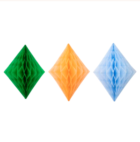 Se ami le decorazioni a nido d’ape, adorerai questo meraviglioso kit composto da 16 decorazioni arcobaleno in 4 dimensioni diverse!
