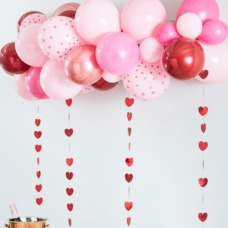 Kit Arco Palloncini Rosa, Rose Gold e Rosso con Cuori