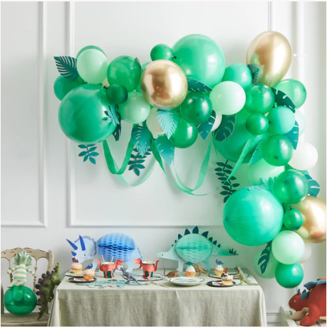 Kit per costruire uno splendido arco di palloncini nelle tonalità del verde con splendide foglie in carta. Sarà il punto focale dell’allestimento ed i tuoi ospiti resteranno a bocca aperta!