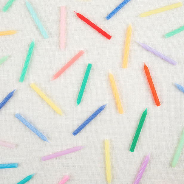 Non rimarrai più senza candeline con questo kit di 50 mini candeline arrotolate in tutti i colori dell’arcobaleno! Sono adatte sia per torte che per cupcakes!