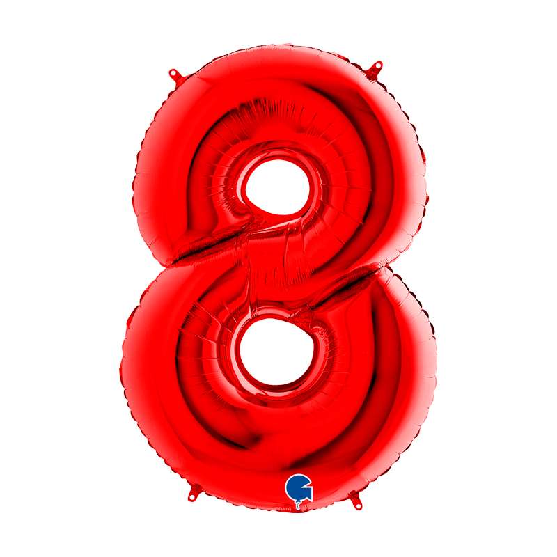 Numero in Mylar Sagomato colore Rosso. Il Palloncino misura 40″/ 102 cm. La confezione contiene un Numero ed è dotato di valvola autochiudente.